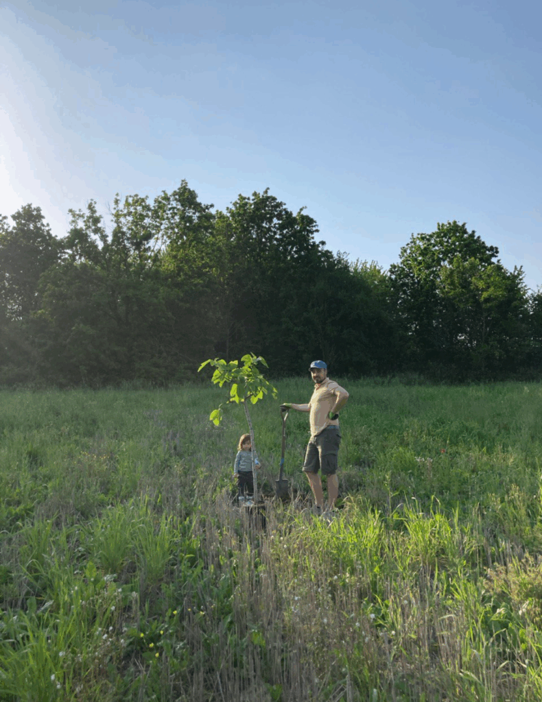 Queste immagini documentano le prime fasi del progetto: lo stato iniziale del campo, l’arrivo delle piante pioniere e gli ospiti che hanno scelto L’Istrice, il presidio ecologico. Ogni immagine è una traccia di trasformazione — un piccolo documento del tempo che comincia a tessere la comunità vegetale, animale e relazionale.